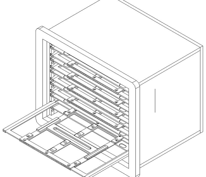 2、托架限位设计,防止操作员误操作将托架抽出,造成产品洒落;