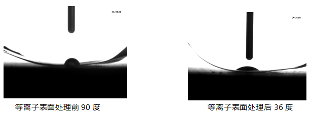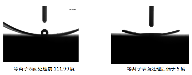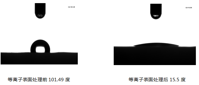 3-2陶瓷填充PTFE聚四氟乙烯薄膜等离子处理前后的水滴角对比